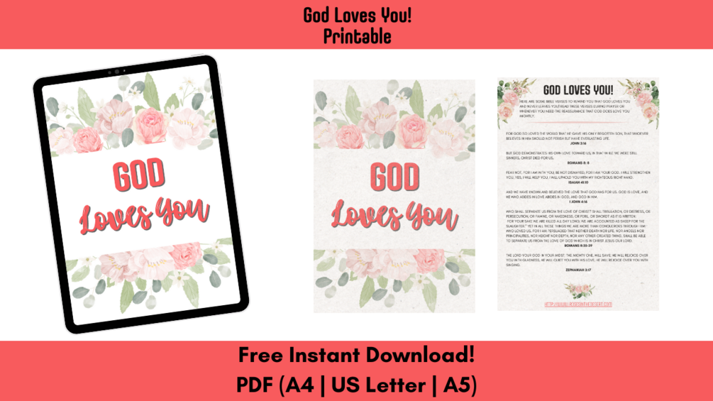 Multiple Sizes Available: When you purchase “God Loves You!”, you’ll receive files in three convenient sizes: US Letter, A5, and A4. Download all three and choose the one that best fits your needs.